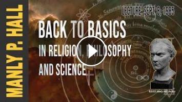 "Back to Basics in Religion, Philosophy & Science" was recorded in front of a live audience in Los Angeles on September 8, 1985 at the Philosophical Research Society, by Manly P. Hall. This recording has been restored to the best listening quality as possible. Thank you for your support in our work.